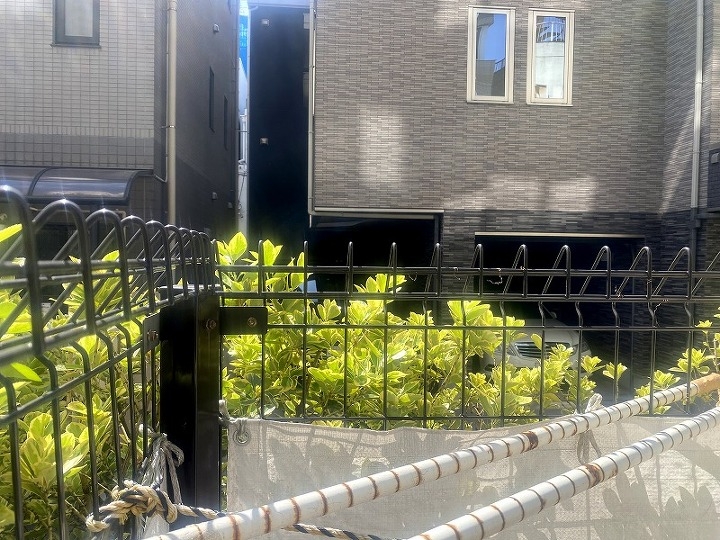 こちらの忍び返しは、ミサワホームイング東京様のご依頼により、一般住宅裏側既存ネットフェンスに特注忍び返しを後付けた事例です。