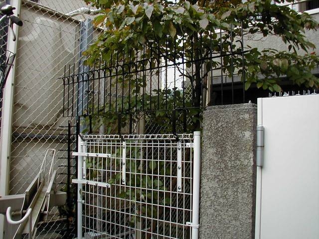 忍び返しは亜鉛メッキ品にホワイト塗装を施した物で、既存のネットと同化して、違和感なく収まっています。
