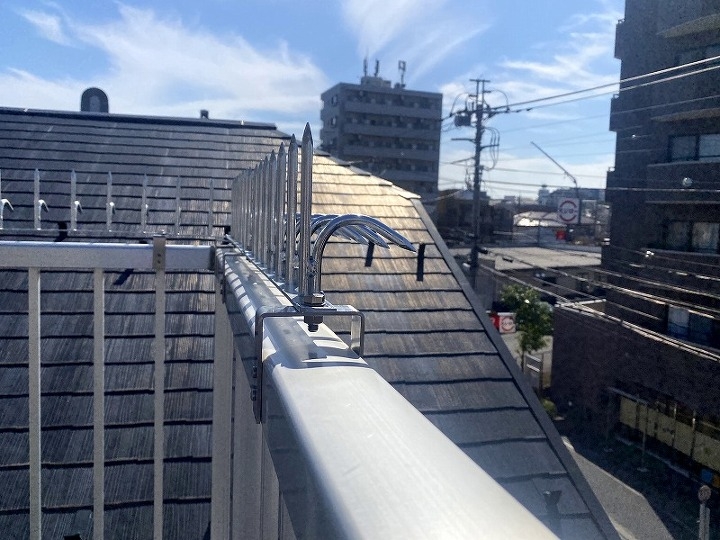 住宅2階のベランダ手摺に忍び返しを設置した事例